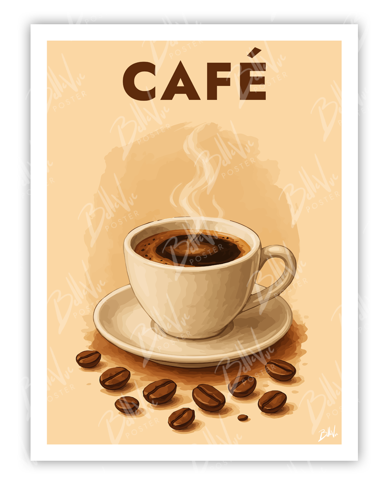 Plongez dans l’univers envoûtant du café fraîchement moulu avec cette affiche vintage BelleVue Poster, une illustration qui célèbre l’arôme intense et la chaleur d’un espresso parfait, symbole intemporel de convivialité et de plaisir simple.